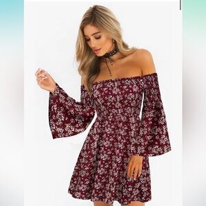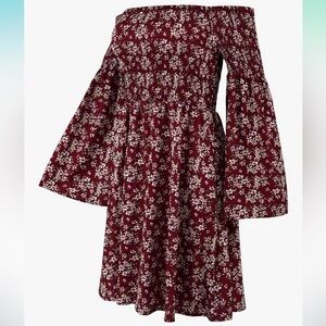Boho Flowy Floral Off the Shoulder Dress Medium