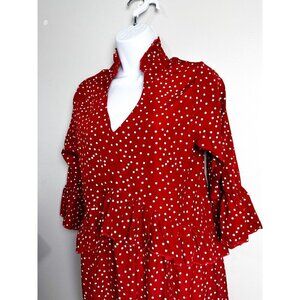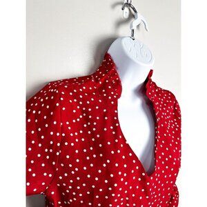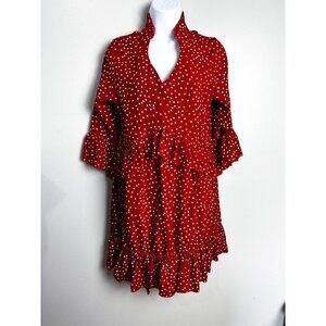 Boho Flowy Ruffle Polka Dot Mini Dress Red White Womens Small