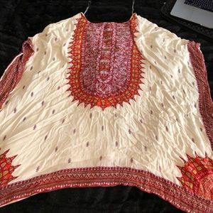 Flowy top, cute as a swimsuit coverup or flare jeans. Very comfy!