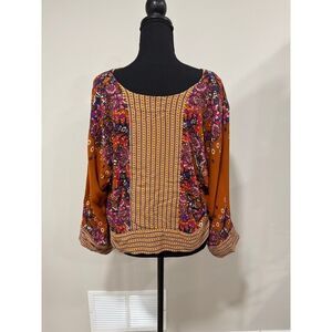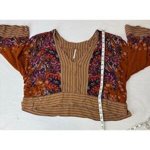 Free People Mix N Match Floral Bell Sleeve Boho Shirt Top Burnt Orange - Small