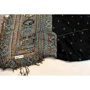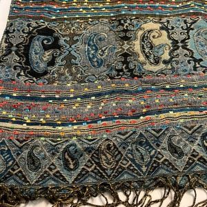 Boho grannycore style paisley double print scarf with fringe. Scarf is in very good condition approximate measurements 26x70 inches