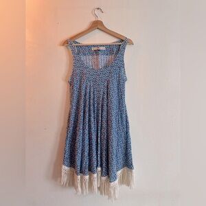 Boho Fringed Printed Sleeveless Tunic w/ Pockets