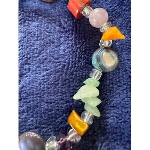 Beautiful one-of-a-kind artisan bracelet featuring a mix of natural gemstones and freshwater pearls in rich earth and ocean tones. Each bead is unique in shape and color, giving the piece a true bohemian character.
