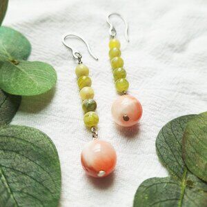 Earthy Green & Pink Chalcedony Dangle Earrings – Handmade Boho Jewelry