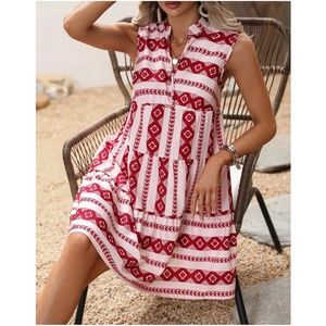 Boho Geo Print Sleeveless Ruffle Dress