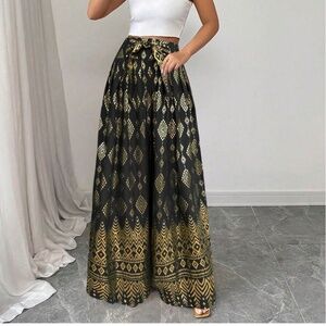 Boho Geo Print Stretchy Waist Wide Leg Pants