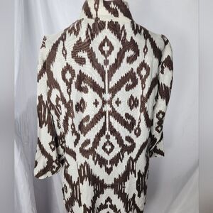 Boho Geo Jacket Blazer Chicos Size 1 3/4 Sleeves Open Chocolate Brown