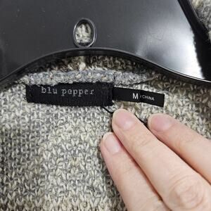 Boho Blu Pepper Fringe Womens Oversized Shawl Cardigan. Size Medium. Gray and cream geometric pattern. Fringe trim Acrylic/polyester. Dolman cut sleeve. Great condition!