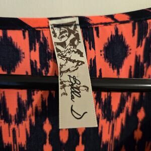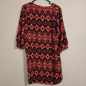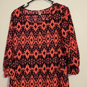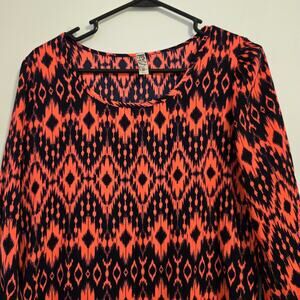 Boho Geometric Print Dress Orange Black Tunic Top Blouse Size M