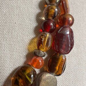 Boho Glass Beaded Fall Colors Red Orange Honey Amber Brass Tone Costume Necklace