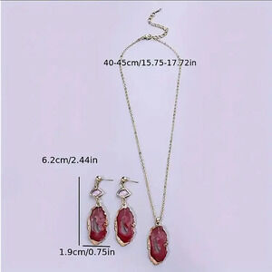 Boho Gold Plated Emerald Resin Necklace Earrings Matching Set