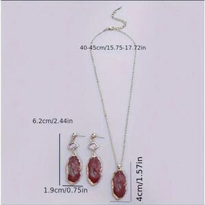 Boho Gold Plated Red Resin Necklace Earrings Matching Set