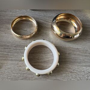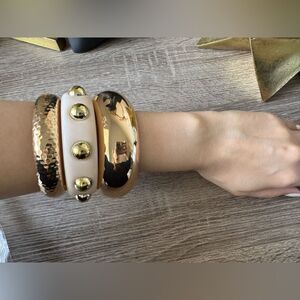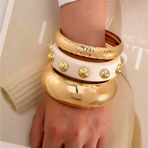 This stunning bracelet set features elegant gold and cream tones, perfect for any occasion. The luxurious design adds a touch of sophistication to your ensemble.