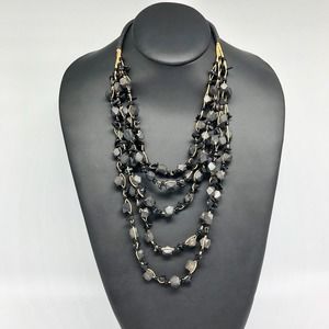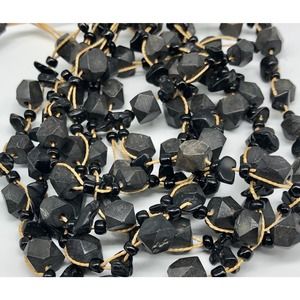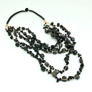 Boho Graduated Black Multi-Strand Beads on Cord Necklace
