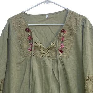 Boho Green Crochet Lace Tunic Top 5XL Floral Embroidered Peasant Blouse Dress