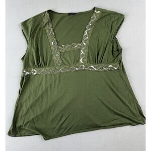 Boho Green Lace Sequin Top Romantic Fairycore Cottagecore Peasant Xl