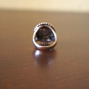 Gorgeous ring with a boho feel to it. Large green stone surrounded with CZ stones. Set in gold antique tone.