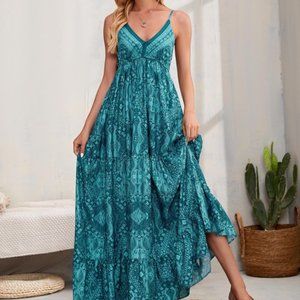 Boho Gypsy BLUE Ruffle Cami Maxi Dress Floral