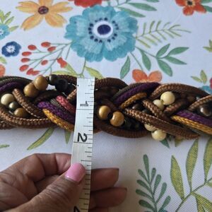 Boho Gypsy Belt Woven Elastic Rope Embellished Beads 39" Length Multicolor