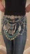 One-of-a-kind handmade chain belt crafted with upcycled beads, charms, and vintage-inspired silver elements. Designed in an eclectic boho and gypsy style, this belt adds shimmer and movement with layered chains, dangling leaves, and sparkling beads in shades of blue and green. Adjustable length of about 38 inches, fitting sizes S–L comfortably. Perfect for festivals, dance, or adding a unique statement to your everyday look. A wearable piece of art made to stand out.