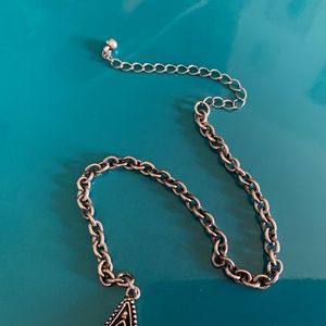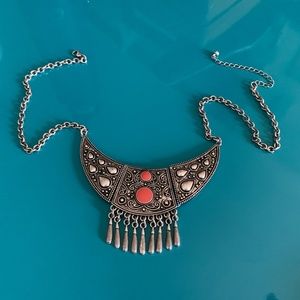 Boho Gypsy Silver Dangles & Orange Enamel Necklace - Tribal Dangle Necklace NWOT