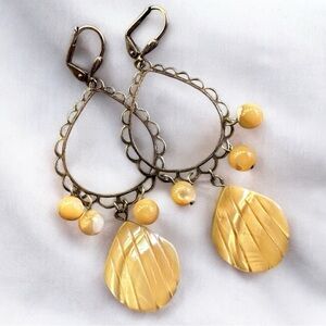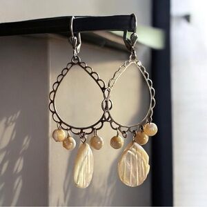 Boho Gypsy Sisters Teardrop Cream Scallop Mother of Pearl Shell Earrings