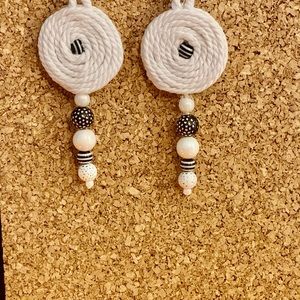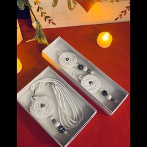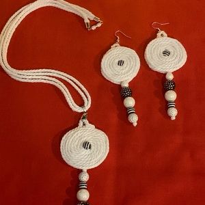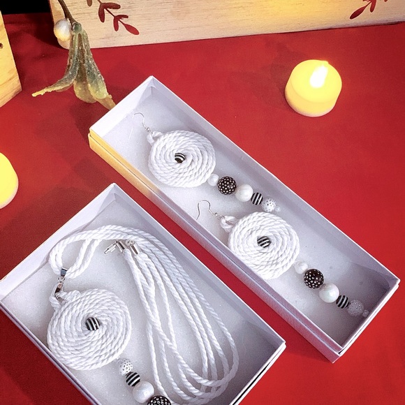 Beautiful Boho handmade ser of Macrame Necklace with macrame Earrings Boho style. Black and white Glass beads .