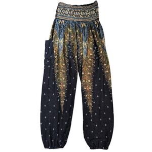 Boho Harem Pants Women Medium Smocked High Waist Wide Leg Festival Hippie Indie