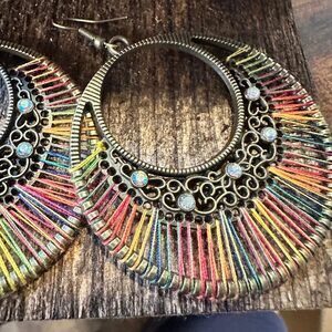 Boho Hippie Cowgirl Threaded Loop Wire Drop Earrings