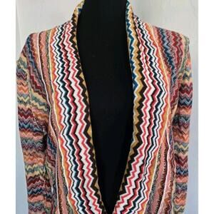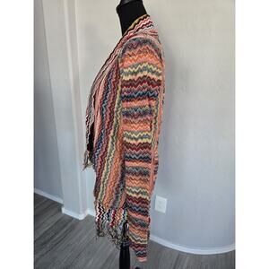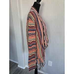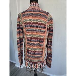 Boho Hippie Fringed Knit Open Cardigan Reverse Print Sweater BKE Gimmicks Sz S
