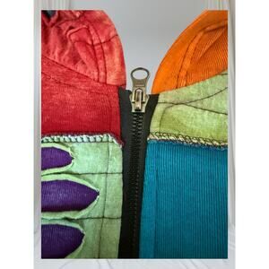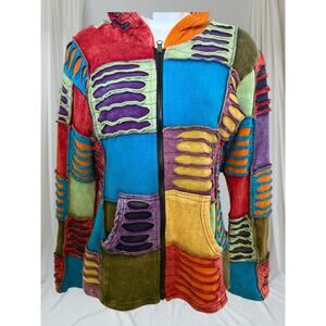 Boho Hippie Patchwork Hoodie Jacket Multicolor Slashed Cotton Zip Up Nepal