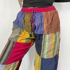 Boho Hippie Patchwork Pant Elastic Waist, Good Condition light wear