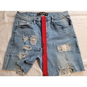 Boho Hippie Reworked denim jean shorts 13/14 dollhouse repurposed distressed and ready to wear. Pet friendly home and non-smoking home.