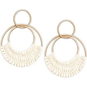 Boho Chic Design: Featuring a classic double hoop rattan pendant, these earrings add a bold yet refined element to your outfit, perfect for lovers of statement jewelry.
