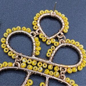 New without tags infinity knot earrings with gold tone base and yellow seed beads, super pretty
