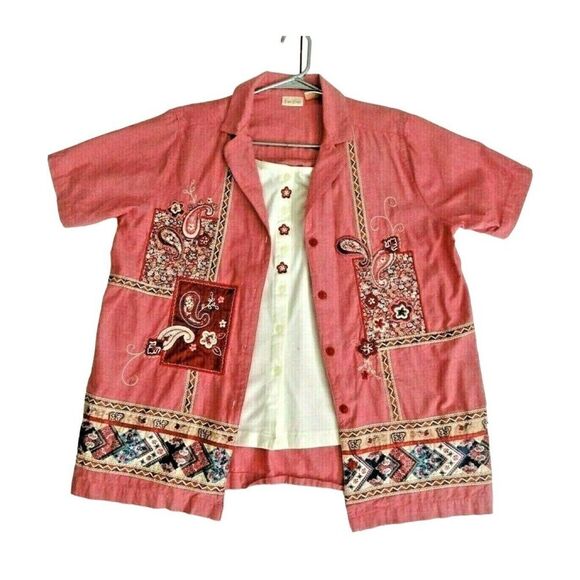 Boho Inspired Bobbie Brooks Paisley Patchwork Blouse Top Sz 14/16 Red Vintage