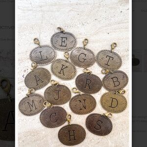These bronze-style letter charms each feature a fun design to them with a Letter!
