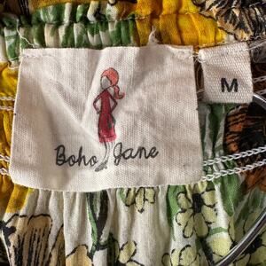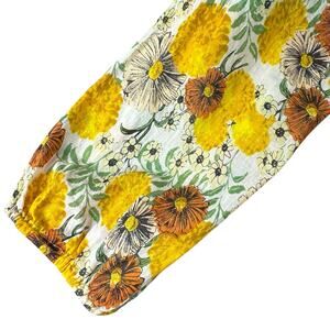 Boho Jane Medium Tunic Top Floral Long Balloon Sleeves Semi-Sheer Keyhole Neck