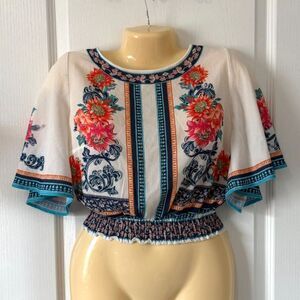 Boho Jealous Tomato M Surplice Cropped Floral Top