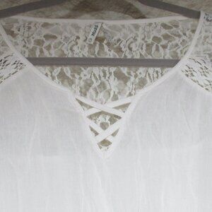 Boho Juniors White Lace Bell Sleeve Front Tie Top NWOT