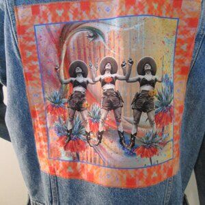 Boho Kantha Denim Jacket, Artisan Crafted Patchwork Distressed Jean Jacket M
