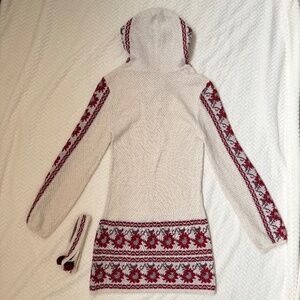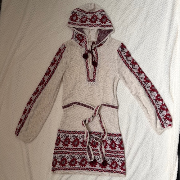 Boho Knit Hooded Tunic XS S Nordic Fair Isle Sweater Dress