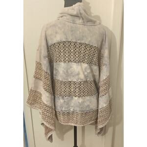 Measurements: 44in wide across. 26in P2P. 21.5in long. 5in collar length. 12in wide collar. This Free People poncho is a dreamy bohemian layering piece—flowy, romantic, and full of texture. It features alternating soft fabric panels and intricate lace crochet stripes, creating an ethereal and artisan-crafted look. The relaxed drape and lightweight material make it perfect for layering over tanks, tees, dresses, or bralettes for year-round style.