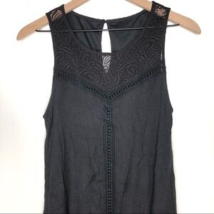 Boho Lace Neckline Sleeveless Midi Dress Black M