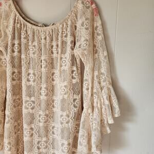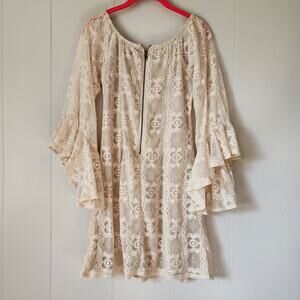 Boho Lace Neutral Western Judith March Bell Sleeve Mini Dress Medium