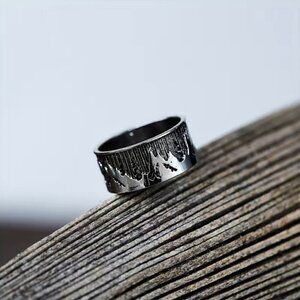 Boho Landscape / Nature and Moon Ring Funky and Chunky #752