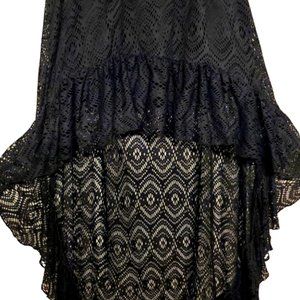 Boho Layered Fishnet High/Low Maxi Skirt. One Size