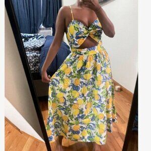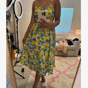 Boho Lemon Print Smocked High Waisted Midi Dress