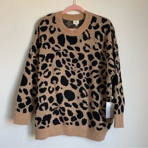 Boho Leopard Animal Print Oversized Wool Blend Fuzzy Sweater NWT Small Medium