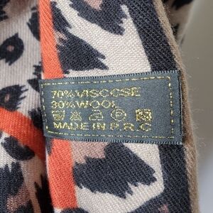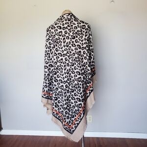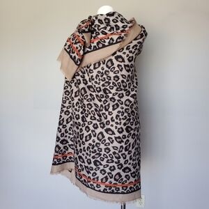Boho Leopard Cheetah Animal Print Wool Scarf Wrap Shawl Raw Hem Trim in wonderful condition. No flaw. May be mistaken for brand new.